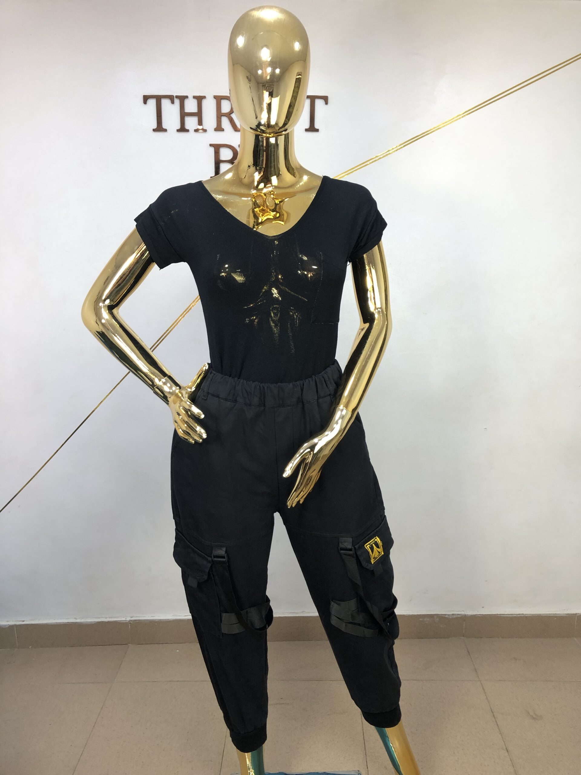 Black carrot cargo pant with ropes as design