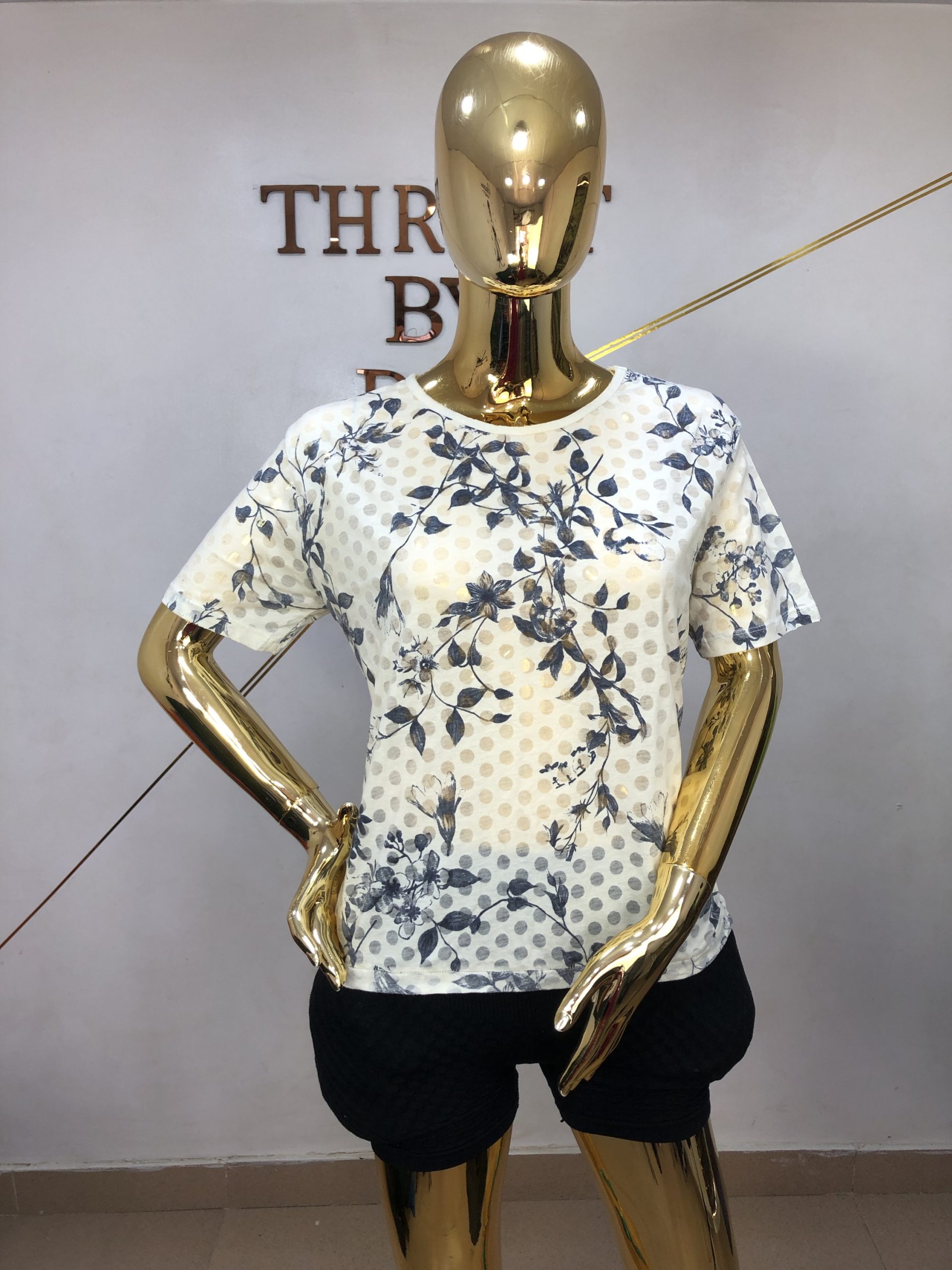 White top with blue design