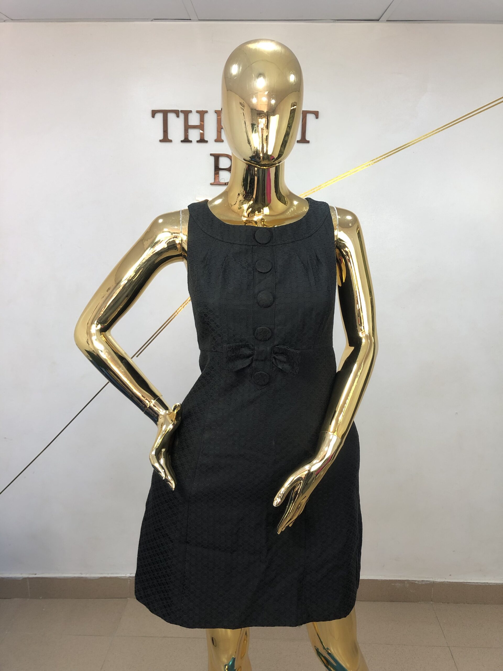 Black A-shaped dress with three buttons bow at the front!